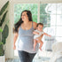 Woman wearing grey seamless nursing tank top nursing her baby
